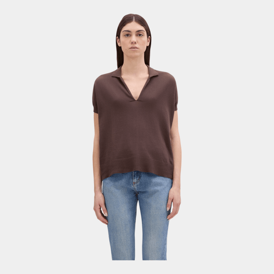Aspesi Polo scollo V in cotone - Marrone
